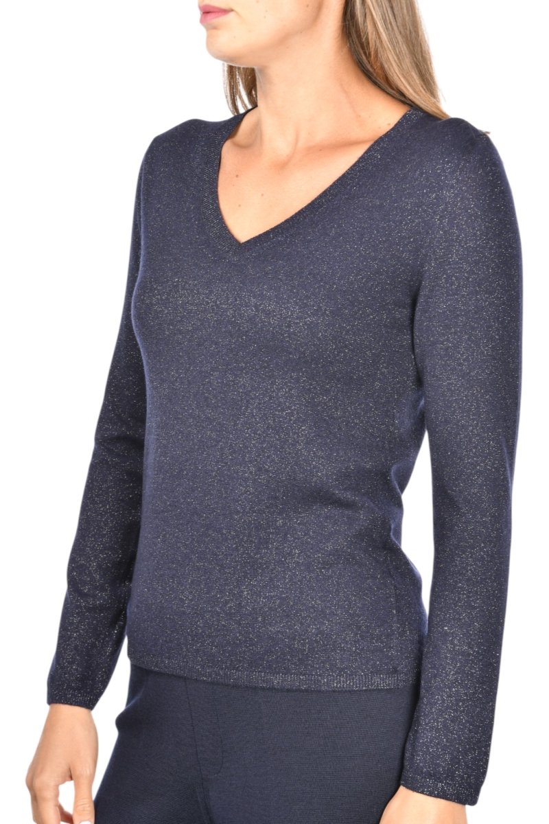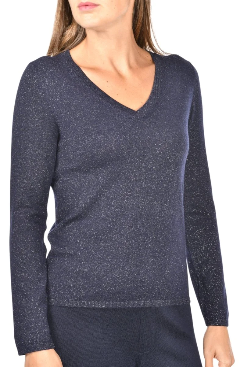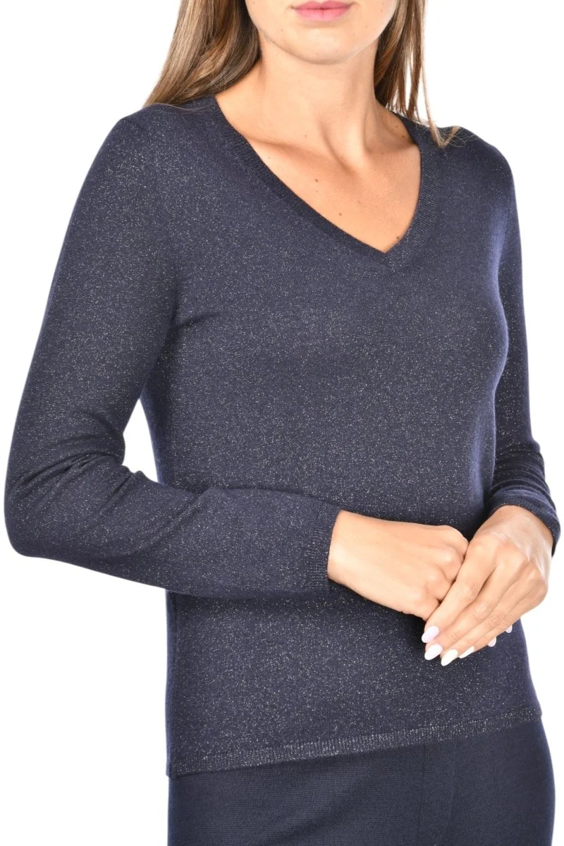 57251 V Neck lurex jumper in navy