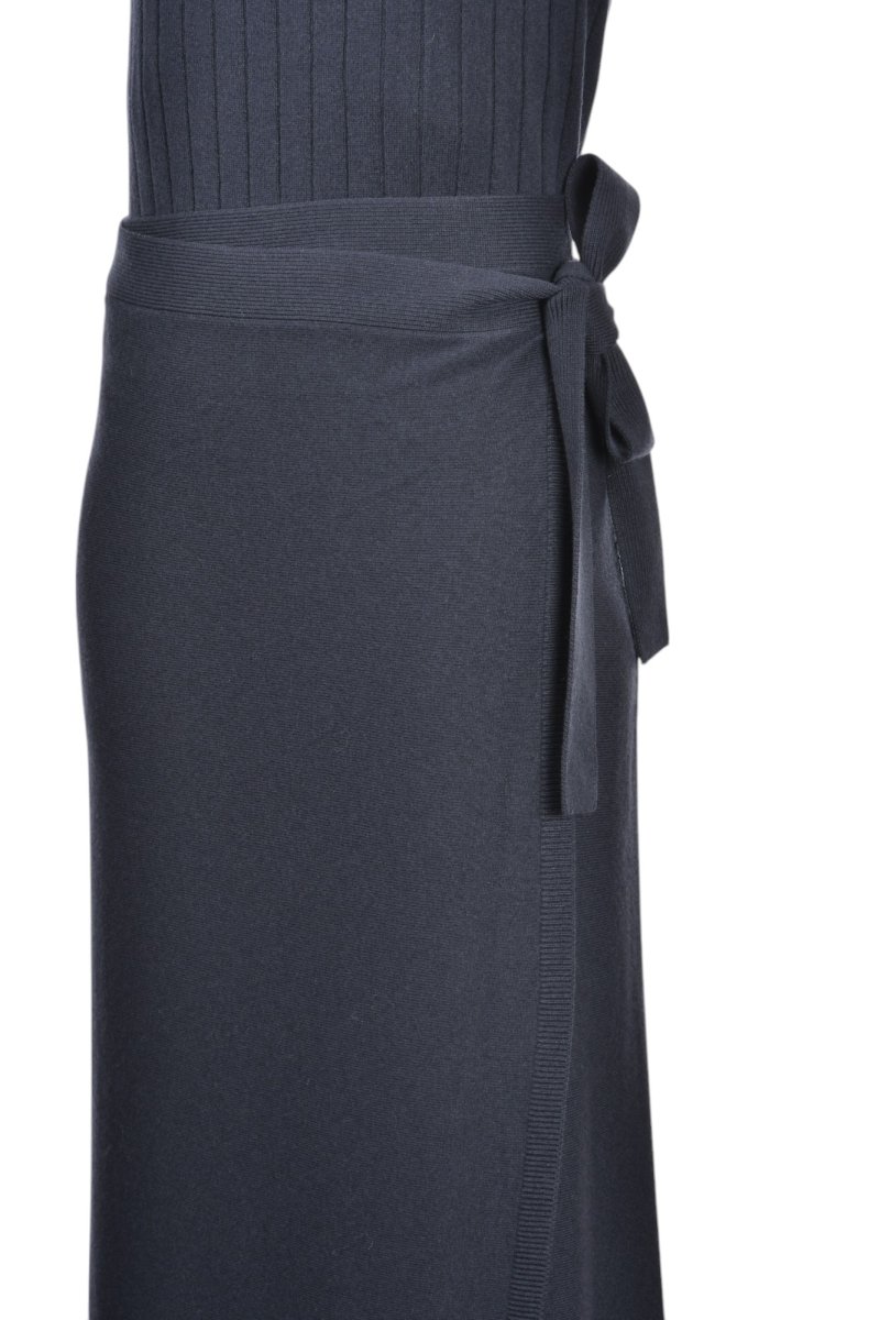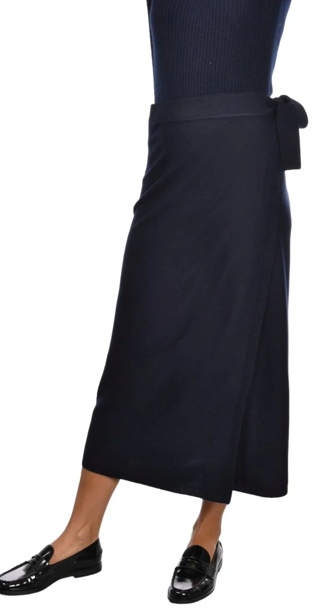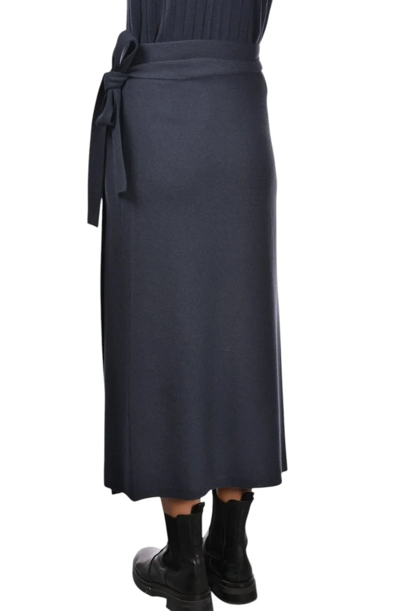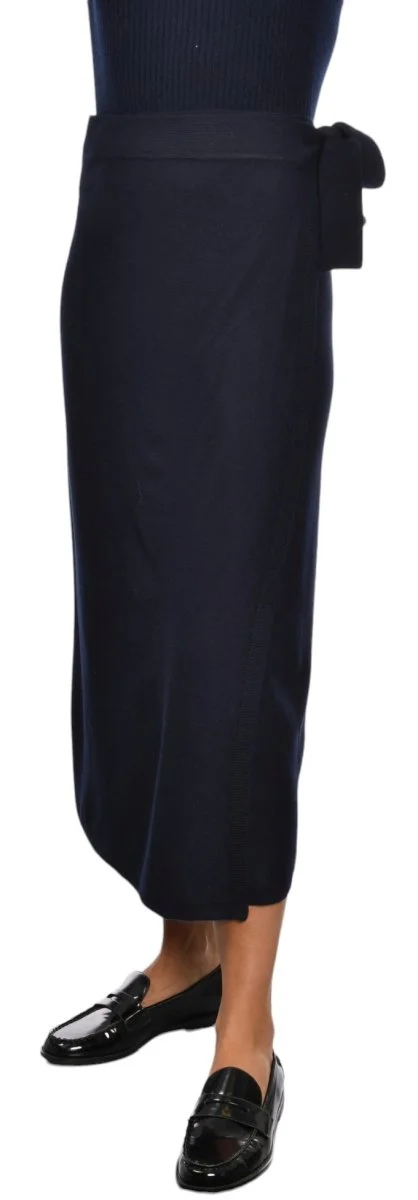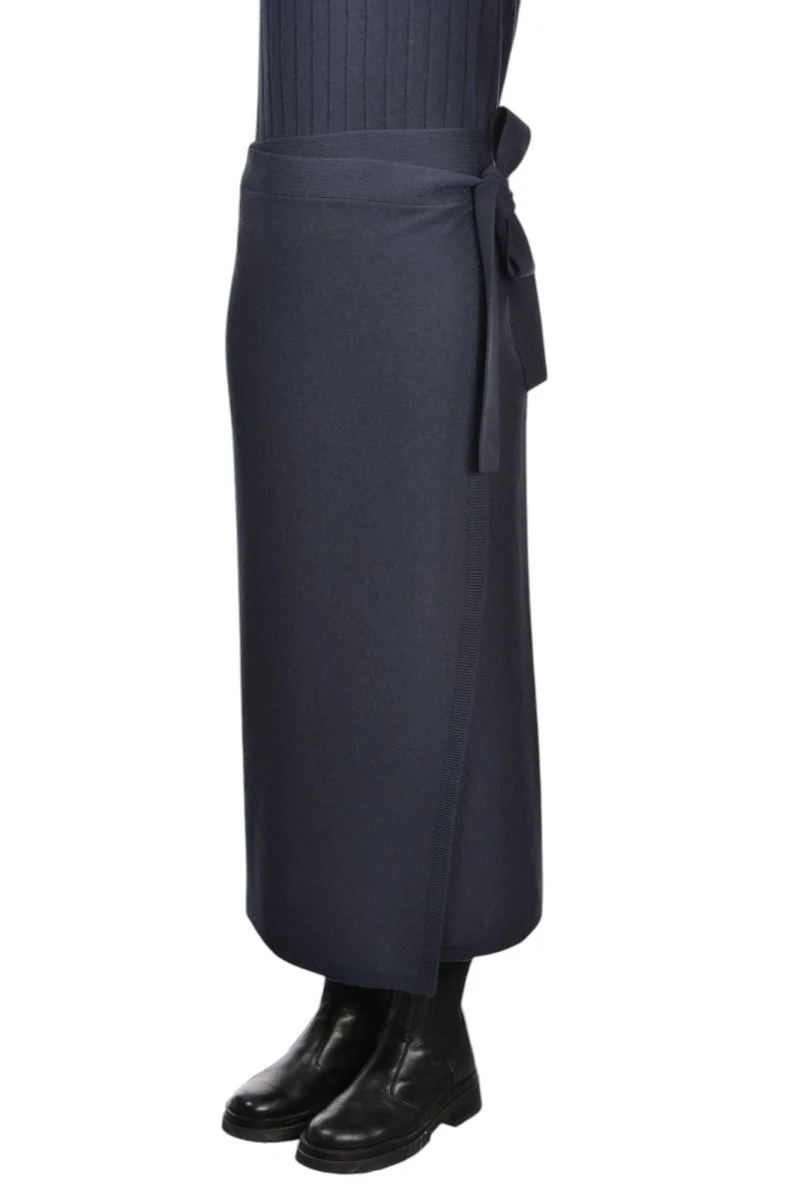 57244 Long knit wrap skirt in Navy