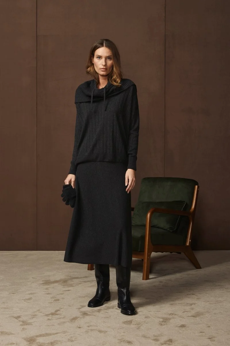 57244 Long knit wrap skirt in Grey