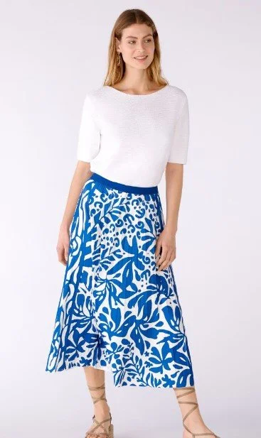 ALL-OVER PRINTED PLEATED SKIRT IN HIGHLY ELASTIC SILKY TOUCH FABRIC